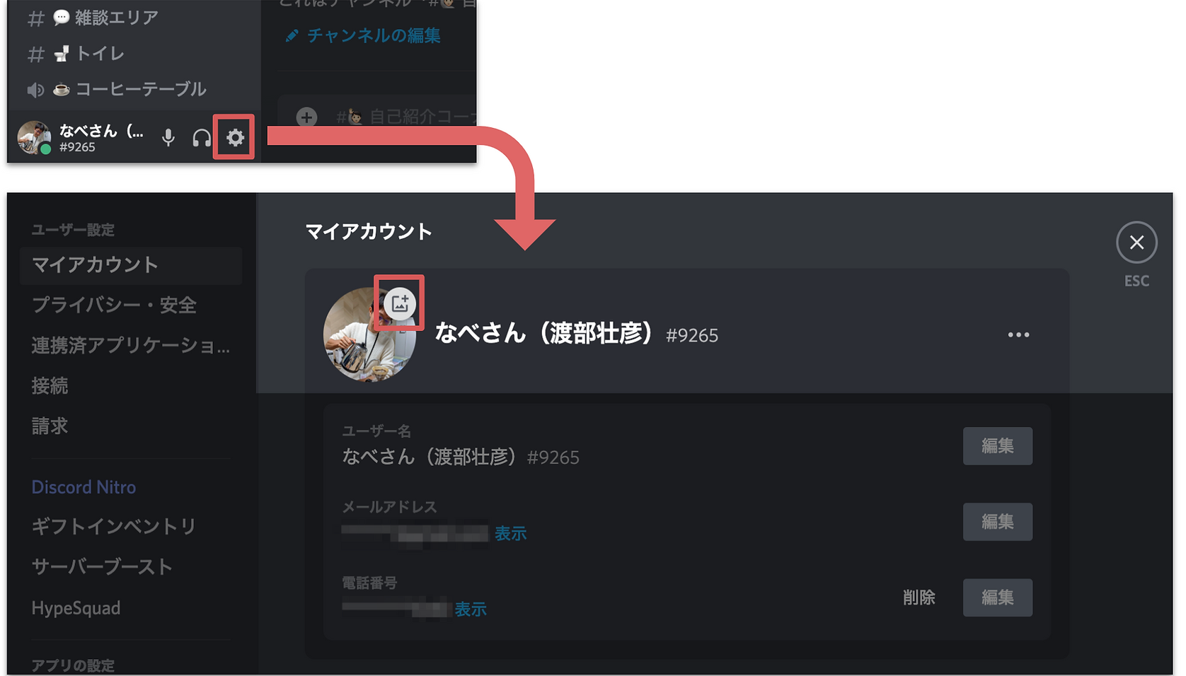 まずはご自身のアイコンを設定しましょう。