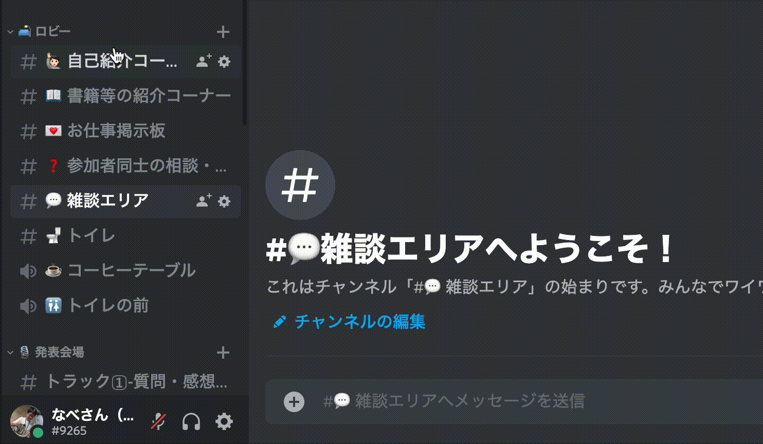 見たいテキストチャンネル、参加したいボイスチャンネルをクリックすることで移動できます。